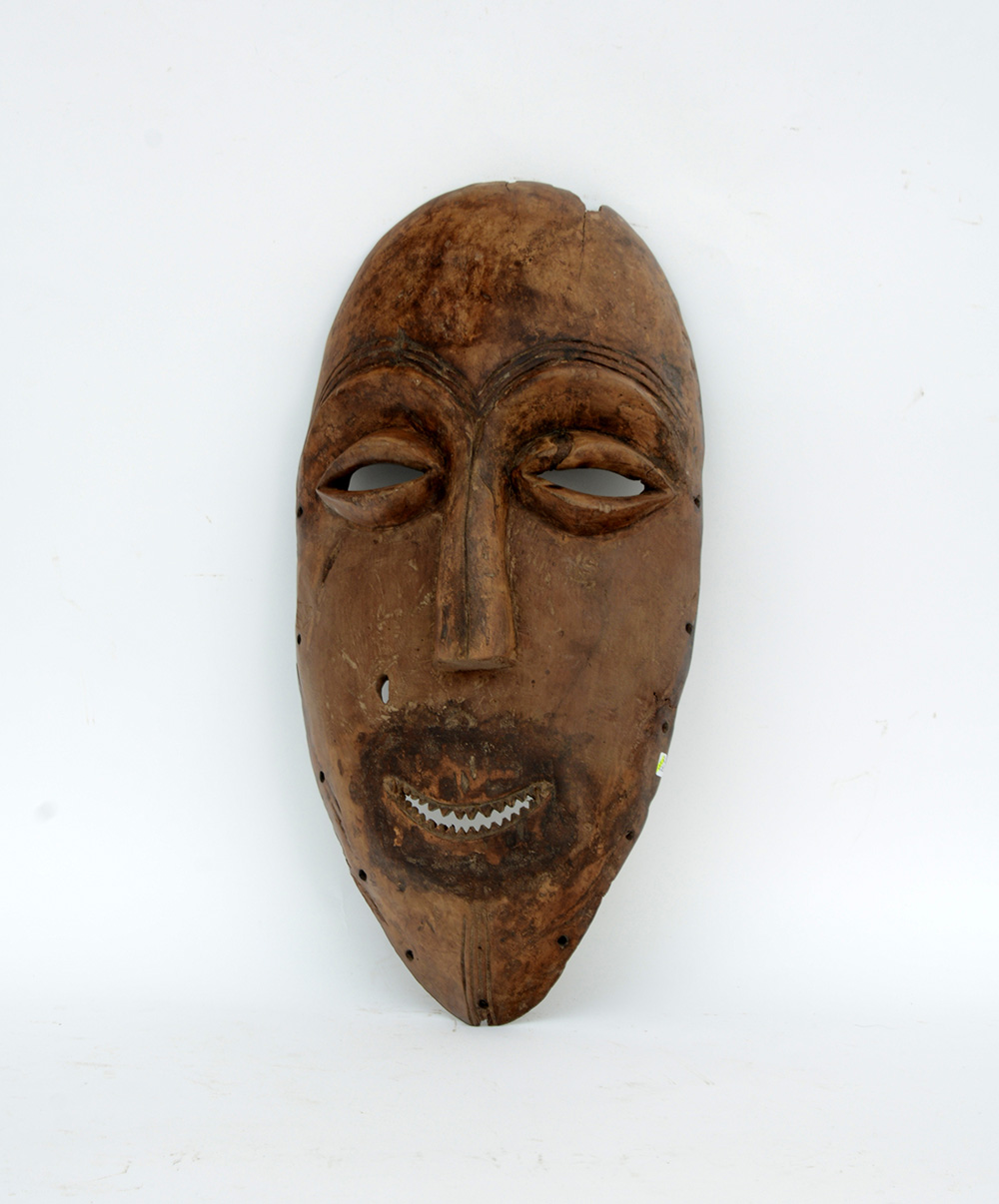 Arte africana, scudo in legno intagliato a forma di volto (l cm 61) (difetti)