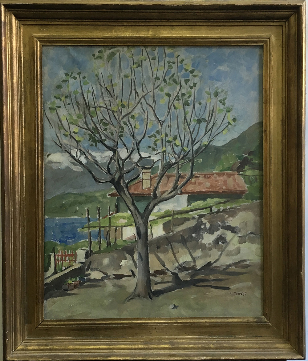 Ignoto "Paesaggio con albero" olio su tela (cm 60x50) firmato C. Monti in...