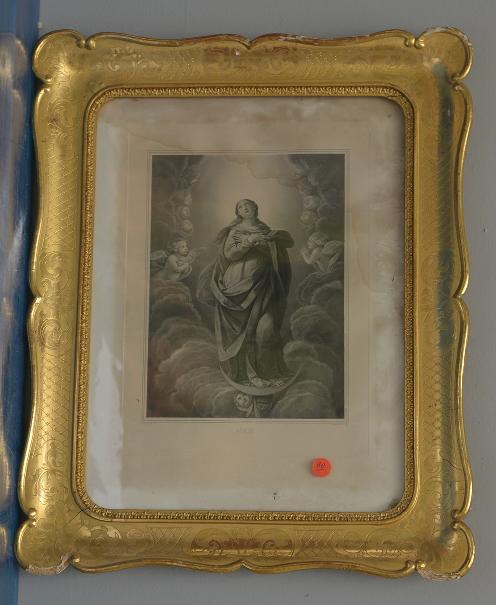 "Assunzione della Vergine da Guido Reni" incisione del secolo XIX (cm 30,8x22) In cornice a vassoio del secolo XIX in legno dorato e bulinato (difetti)