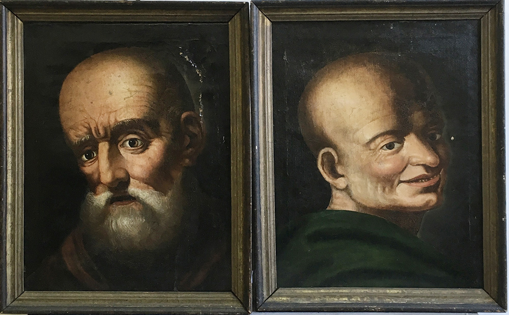 Scuola del secolo XIX "Ritratti" coppia di olii su tela (cm 37x28) in cornici (difetti e restauri)