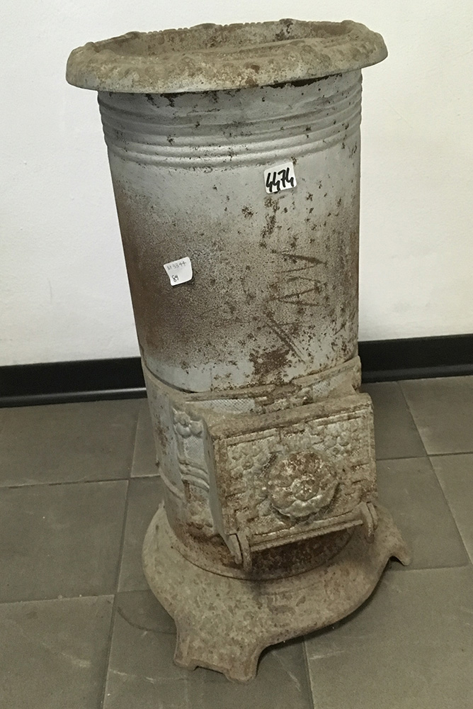 Lotto 4474 | Stufetta in ghisa decorata a motivi floreali e geometrici (h. cm 56)