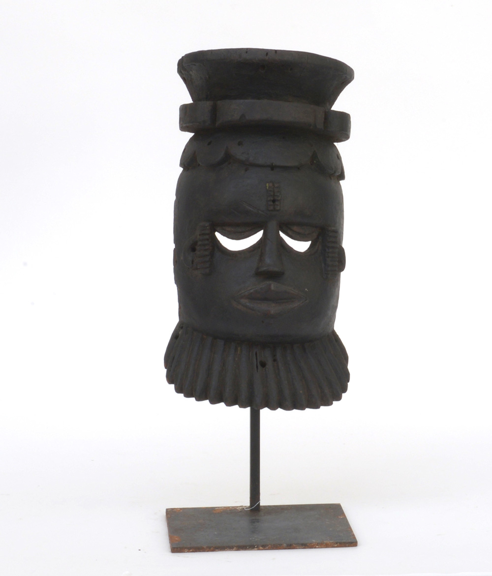 Arte africana, maschera in legno intagliato con supporto in metallo (h cm 35) (difetti)