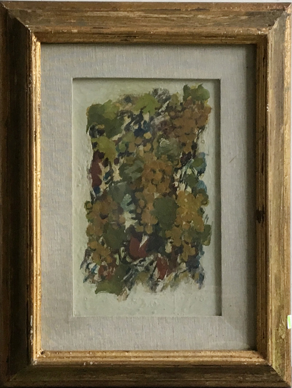 Firma indecifrata “Senza titolo” olio su masonite (cm 30x20) firmato è iscritto al retro, in cornice (difetti)