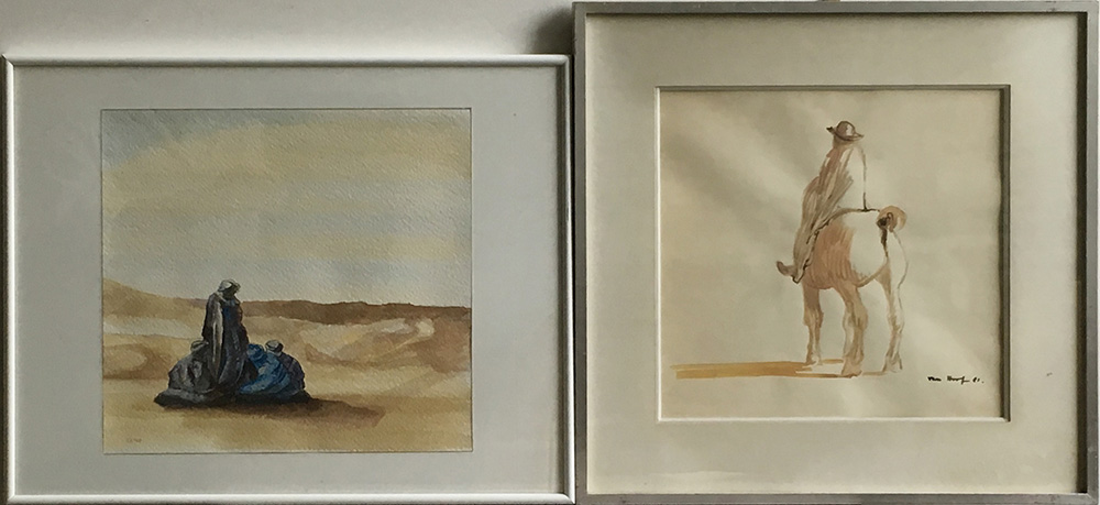 Lotto di due disegni ad acquarello, soggetti, autori e misure diverse, in cornici (difetti)
