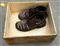 scarpe in pelle e acrilici in scatola in legno dipinto