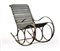 Poltrona a dondolo in ferro battuto a riccioli, seduta e schienale a listelli...