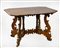 Tavolo con piano ottagonale, gambe e traverse sagomate, montanti centrali...