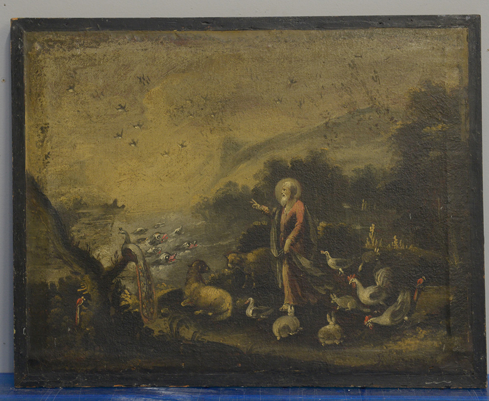 Scuola del Secolo XVIII, Scena Biblica, olio su tela (cm 57x73)(difetti e restauri)
