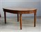 Tavolo da pranzo in noce con piano ovale, fascia lastronata in radica a due...