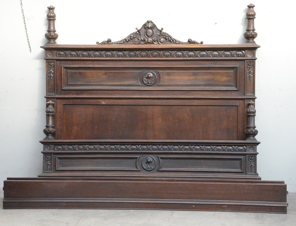 Letto ad una piazza e mezza in legno intagliato a motivi vegetali e conchiglie (difetti)