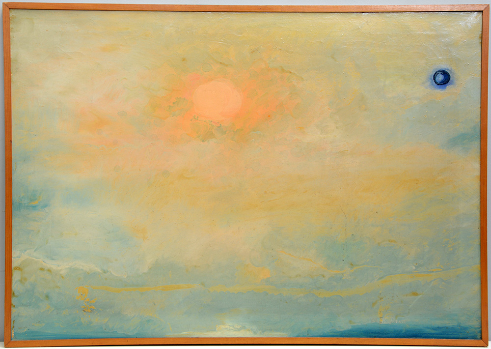 "Aurora polare" 1969 olio su tela (cm 70x100) firmato in basso a destra. Firmato, titolato e datato l retro, in cornice (difetti)