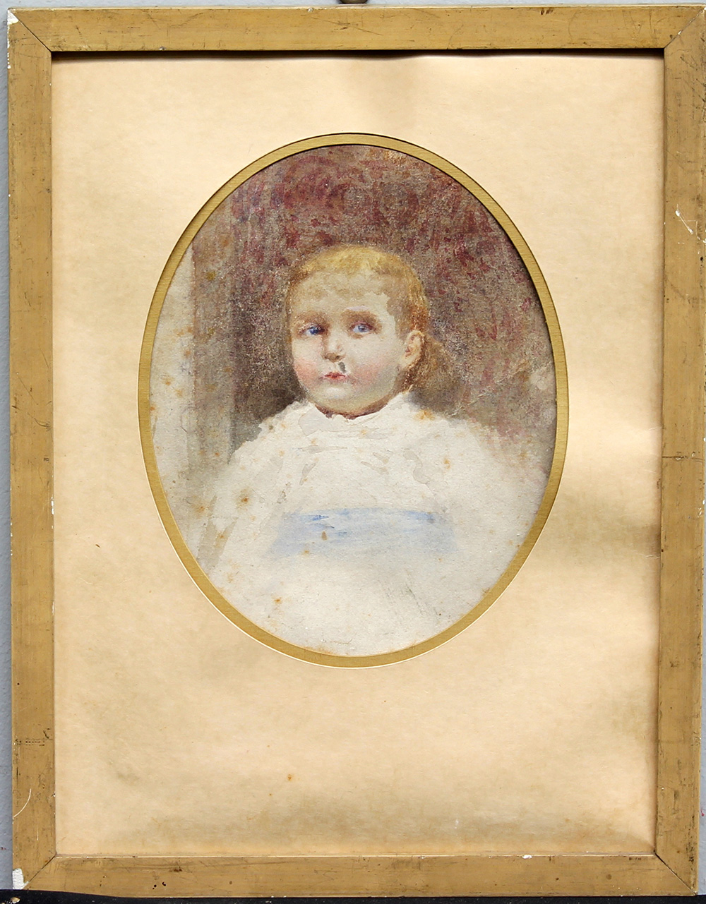 (Attr.) "Ritratto di bimbo" acquarello ovale (cm 20x15) in cornice (difetti)