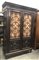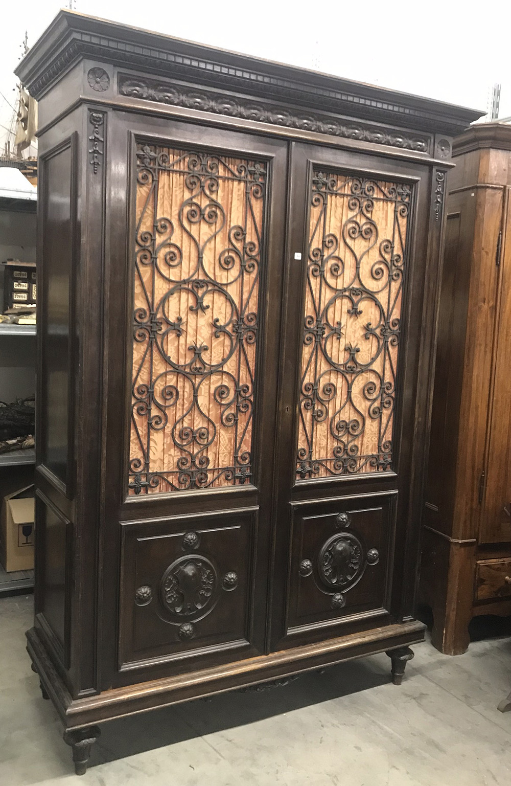 Armadio a due ante decorate in ferro battuto nella parte superiore e a rosoni...