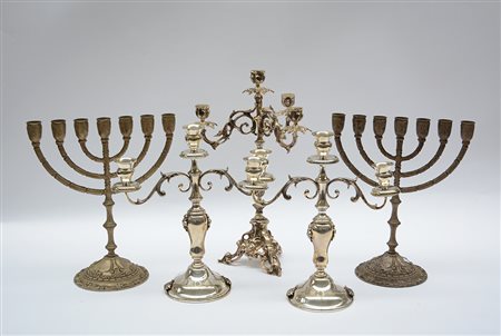Lotto composto da cinque candelieri in metallo e metallo argentato