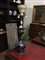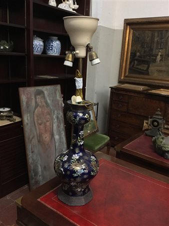 Manifattura Boch Freres, Belgio fine del secolo XIX, lampada da tavolo in ceramica a fondo blu decorata in oro e smalti policromi a motivi floreali (H cm 90)