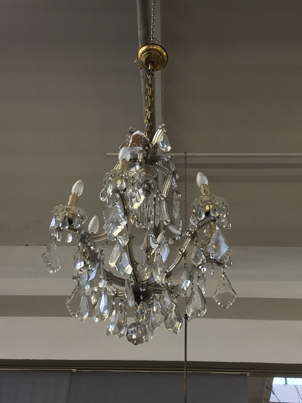 Lampadarietto a sei fiamme in vetro e metallo (h cm 80)(difetti e mancanze)