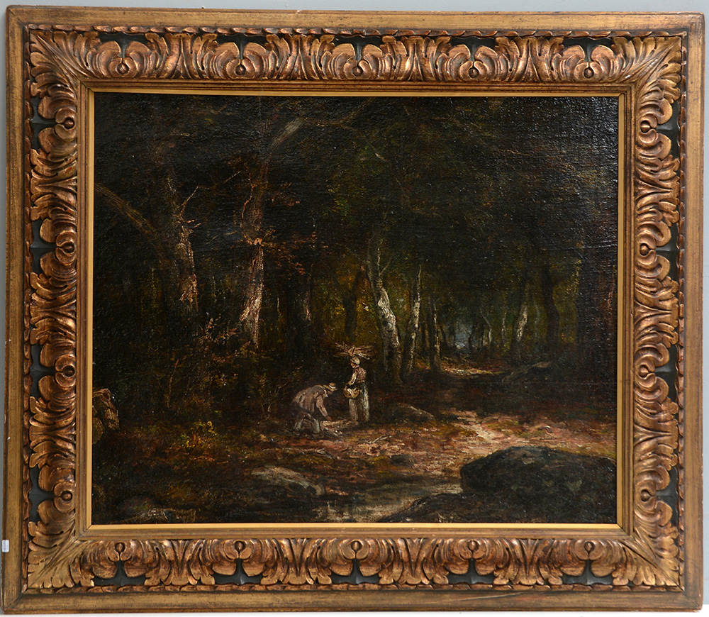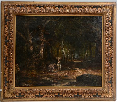 Ignoto da Narcisse Virgile Diaz de la Pena "Figure nella foresta" olio su tela (64x80)in cornice (difetti e restauri)