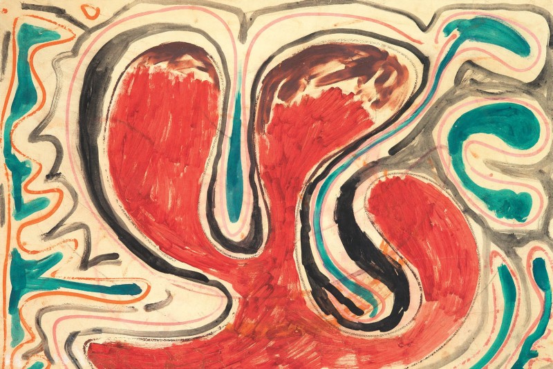 Tancredi (Parmeggiani) Feltre (Bl) 1927 - Roma 1964 Senza titolo, (1953) Tempera su carta applicata su tavola, cm. 65x97,5 Al verso: timbro Galleria Meta, Bologna. Bibliografia: Marisa Dalai Emiliani, Tancredi, i dipinti e gli scritti, 2 volumi, con la collaborazione di Silvia Mascheroni e Cecilia Scatturin, Umberto Allemandi, Torino, 1997, vol. I, p. 237, n. 477, vol. II, tav. 477 (riprodotto capovolto).