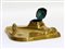 Calamaio liberty in ottone decorato con animali stilizzati, iscritto sotto la base Ceschtzt