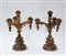 Coppia di candelabri a quattro fiamme di gusto neogotico in legno dorato,...