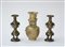Lotto composto da una coppia di vasetti con supporto tripode in bronzo e anse...