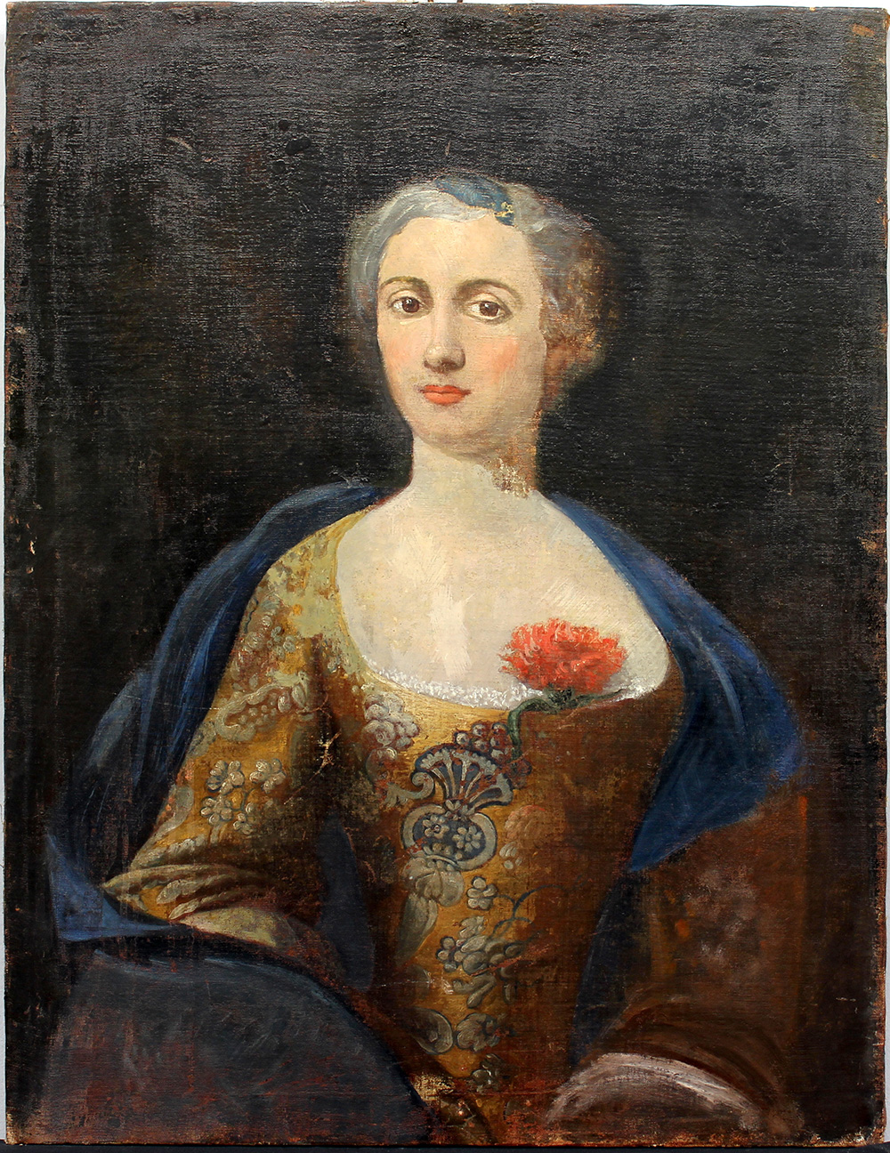 Antico dipinto raffigurante una gentildonna, olio su tela (cm 80x61) (gravi difetti e restauri)