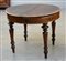Tavolo tondo in noce, due cassetti nella fascia, quattro gambe sfaccettate tornite al'attacco, secolo XIX (d cm 97x78)(difetti e restauri)