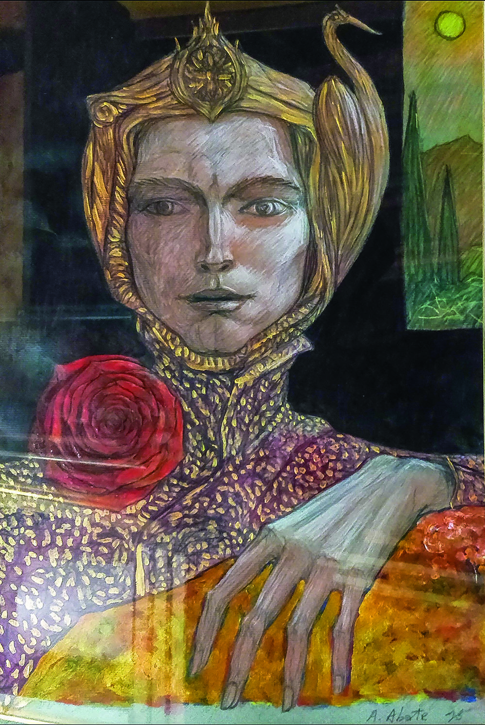 Alberto Abate Figura alata tecnica mista su carta del 1987 50x35