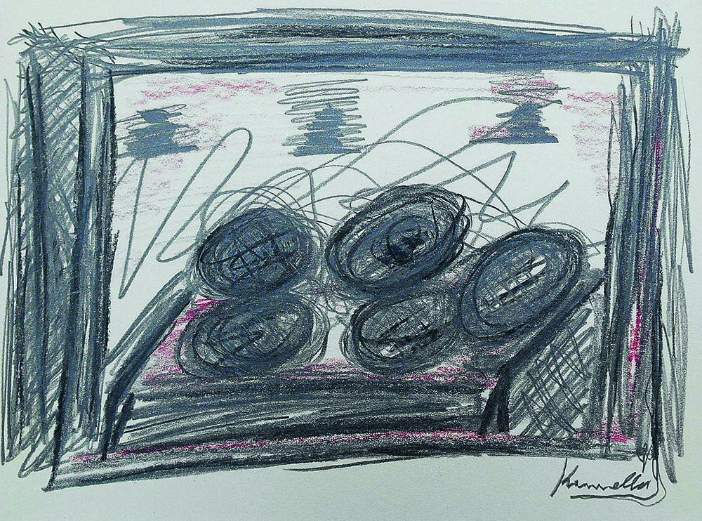 Jannis Kounellis carboncino su carta 22x29 1990 autentica Kounellis e timbro galleria Ferranti