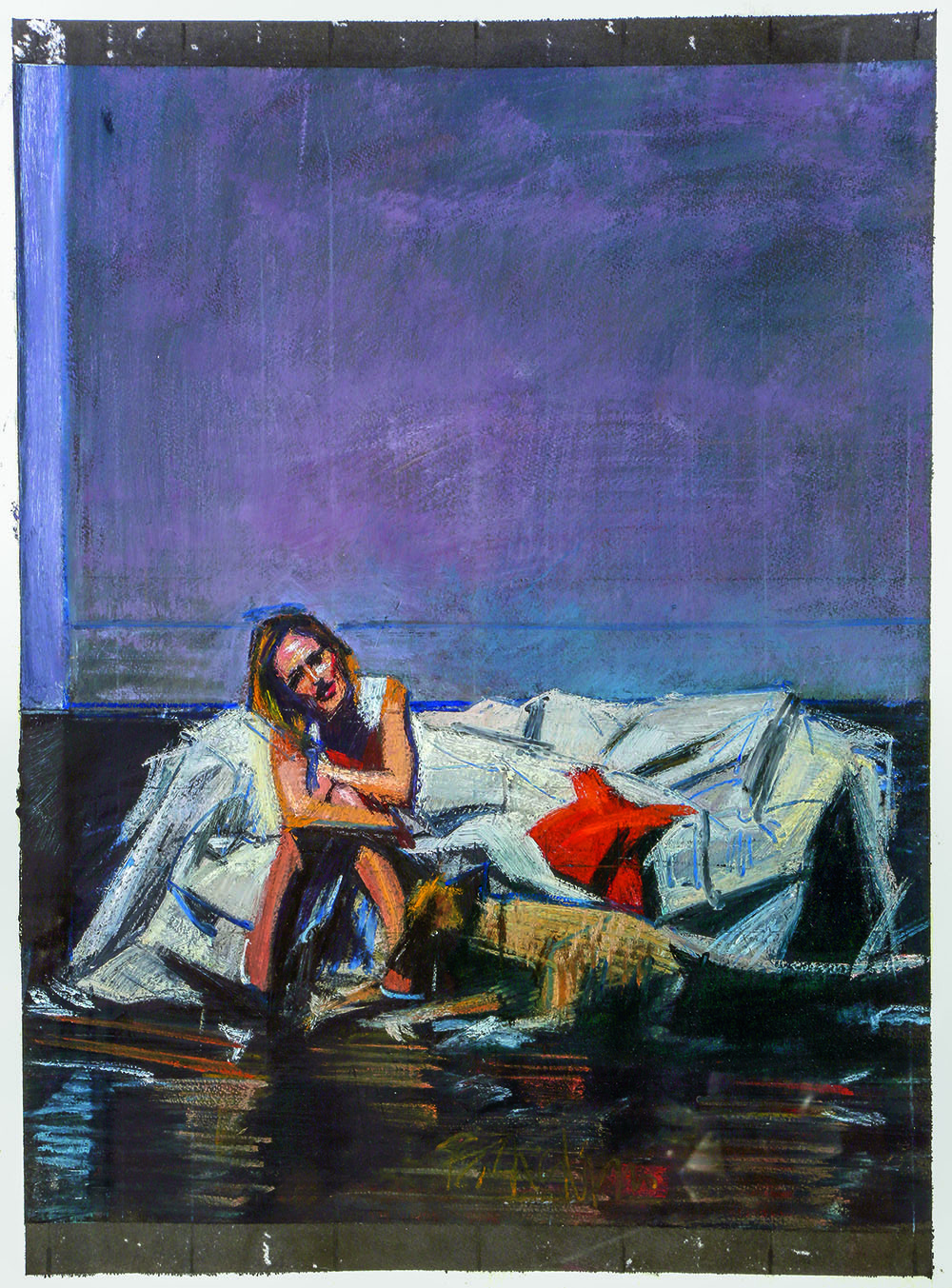 Bernardo Siciliano Fame Coher olio e pastello su carta 57x77 autentica dell'artista su foto