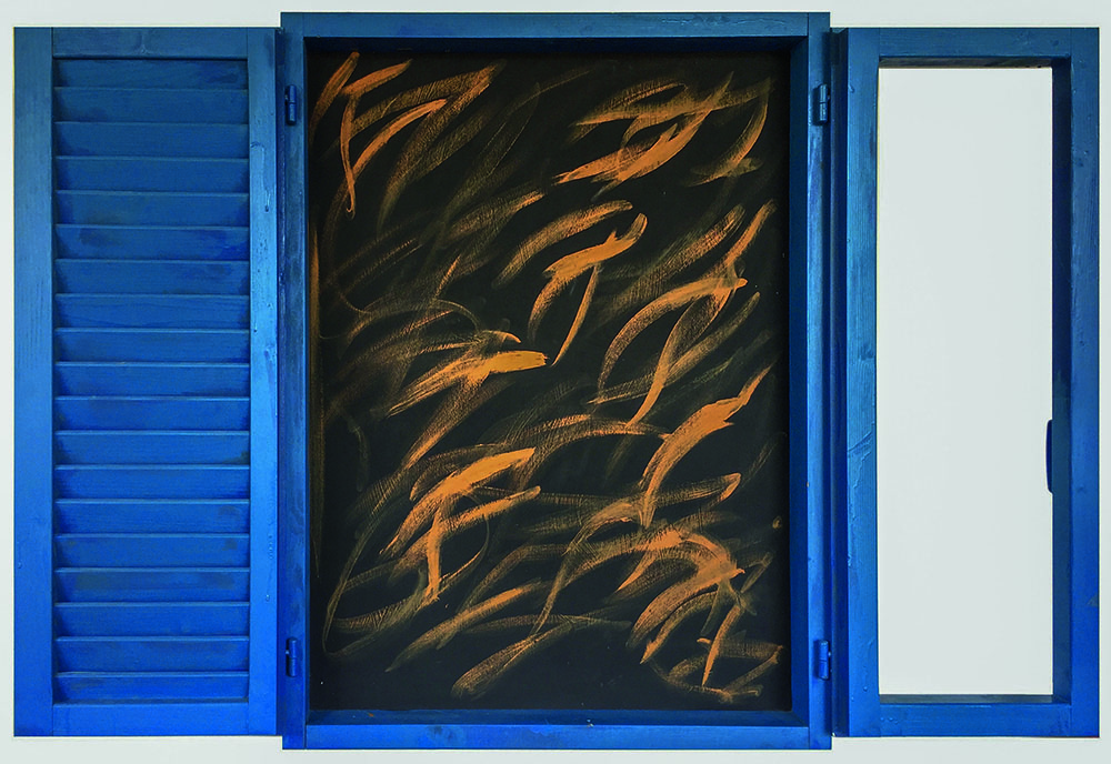 Tano Festa La persiana acrilico su tela e Legno 80x100 del 1986 archivio Soligo