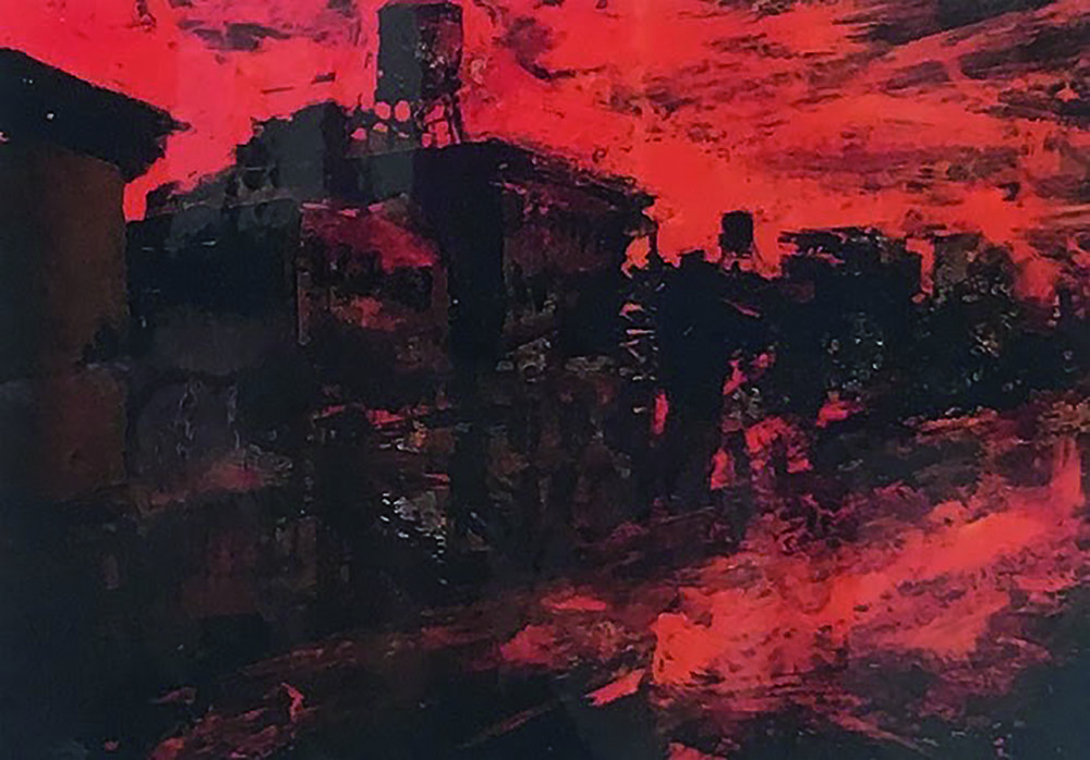 Alessandro Busci New York arancio 2010 smalto su ferro 51x71 autentica dell'artista su foto