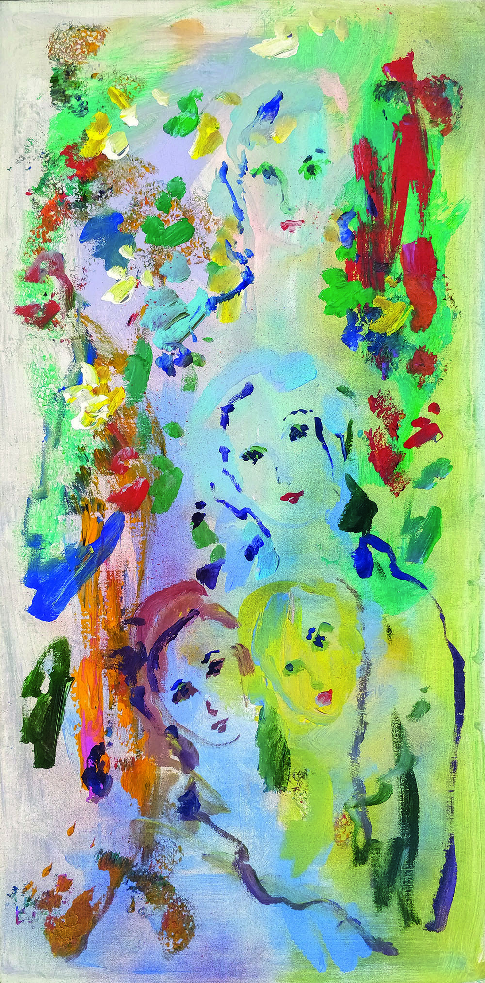 Ernesto Treccani 4 figure olio su tela 90x45 autentica dell'artista su foto