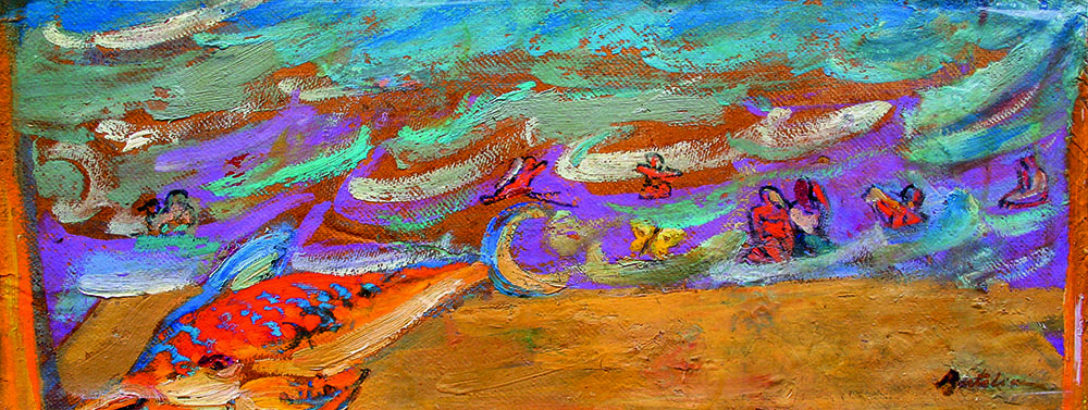 Luigi Bartolini Il pesce spada olio su cartone 25x70 del 1950