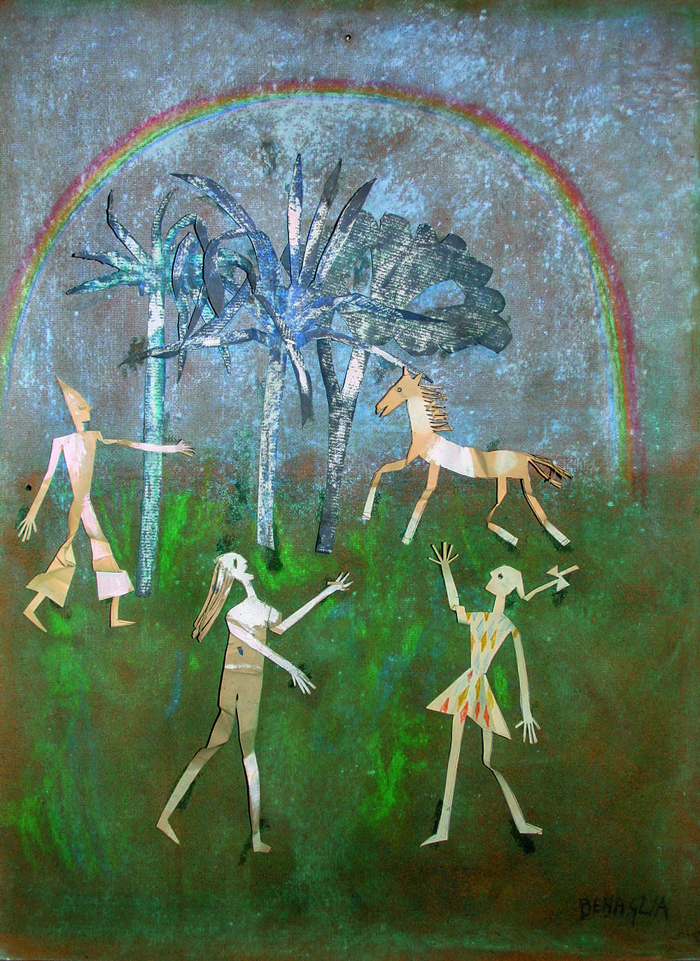 Lotto 121 | Enrico Benaglia Il giarnino incantato pittura e collage del 1992 80x60...