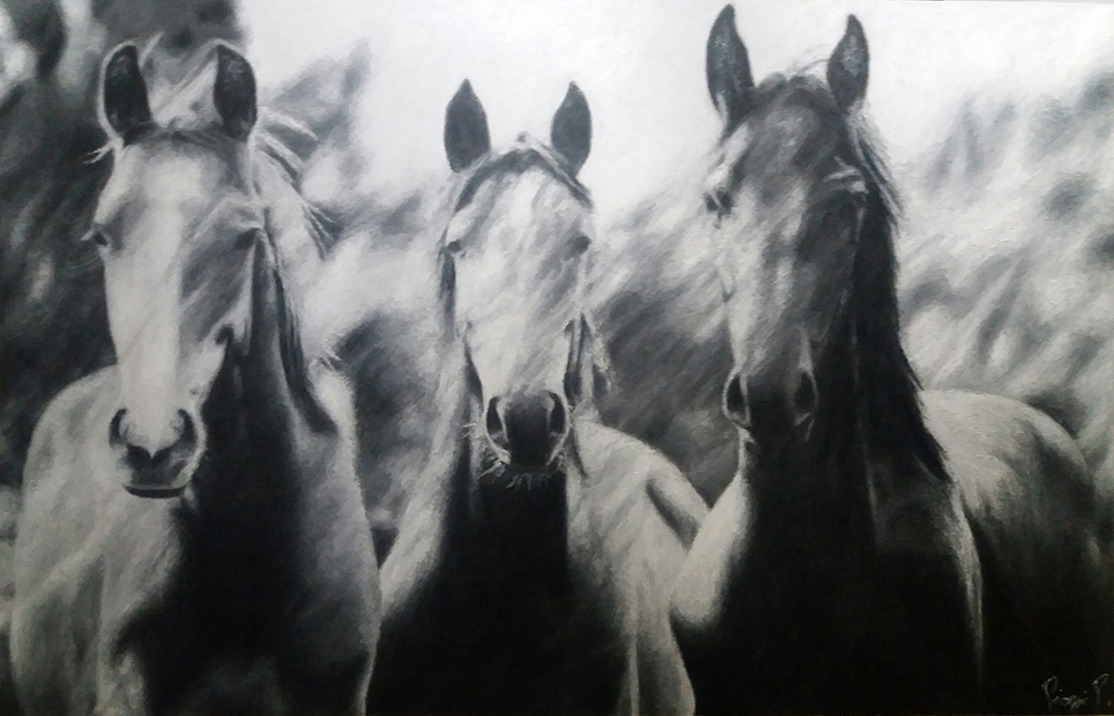 PATRICK PIOPPI 52 HORSES, 2017 olio su pannello cm 95x140