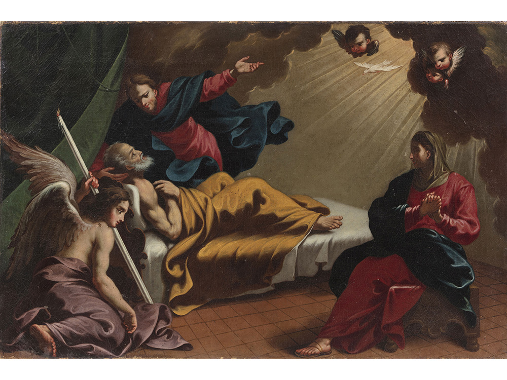 Anonimo Maestro del XVII secolo Morte di S. Giuseppe 62,5x94,5 cm Olio su tela