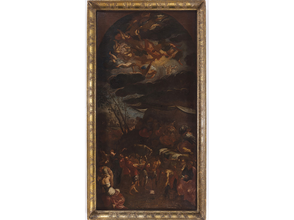 After Iacopo Tintoretto (Venezia 1519-1594) Adorazione del vitello d'oro 138x69 cm Olio su tela