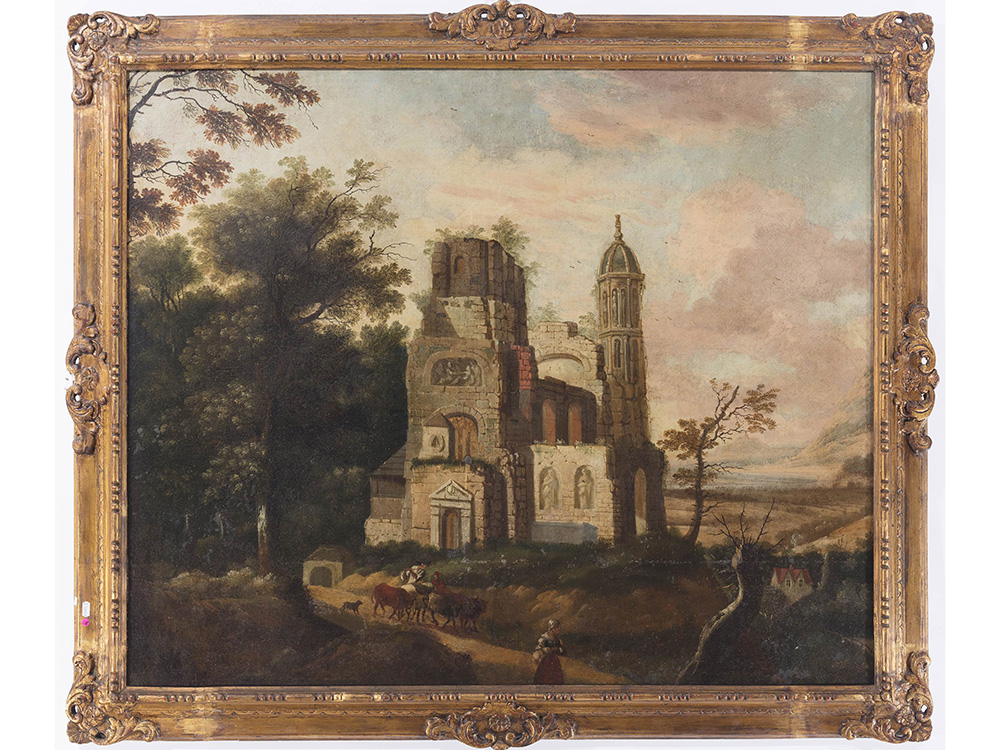 Lotto 11 | Anonimo Anonimo (XVIII secolo) Paesaggio con rovine e figure 104,5x125 cm...