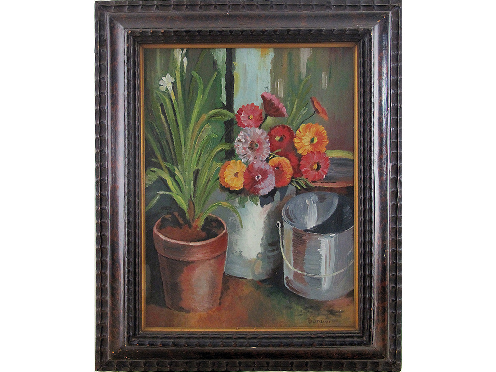 Gentilini Gentilini (XX secolo) Natura morta con secchiello 40x30 cm Olio su cartone