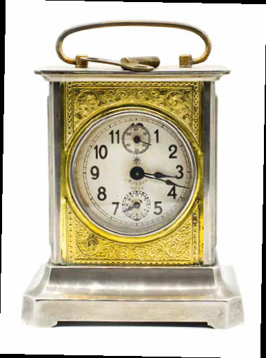 OROLOGIO DA TAVOLO in metallo con quadrante a numeri arabi con movimento a...