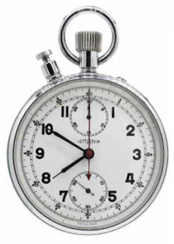 CRONOGRAFO DA GARA LEMANIA in acciaio con quadrante bianco e numeri arabi,...