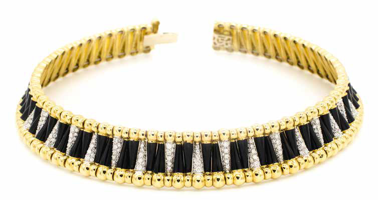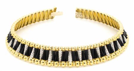 COLLIER RIGIDO in oro giallo con brillanti e smalti, gr. 155
