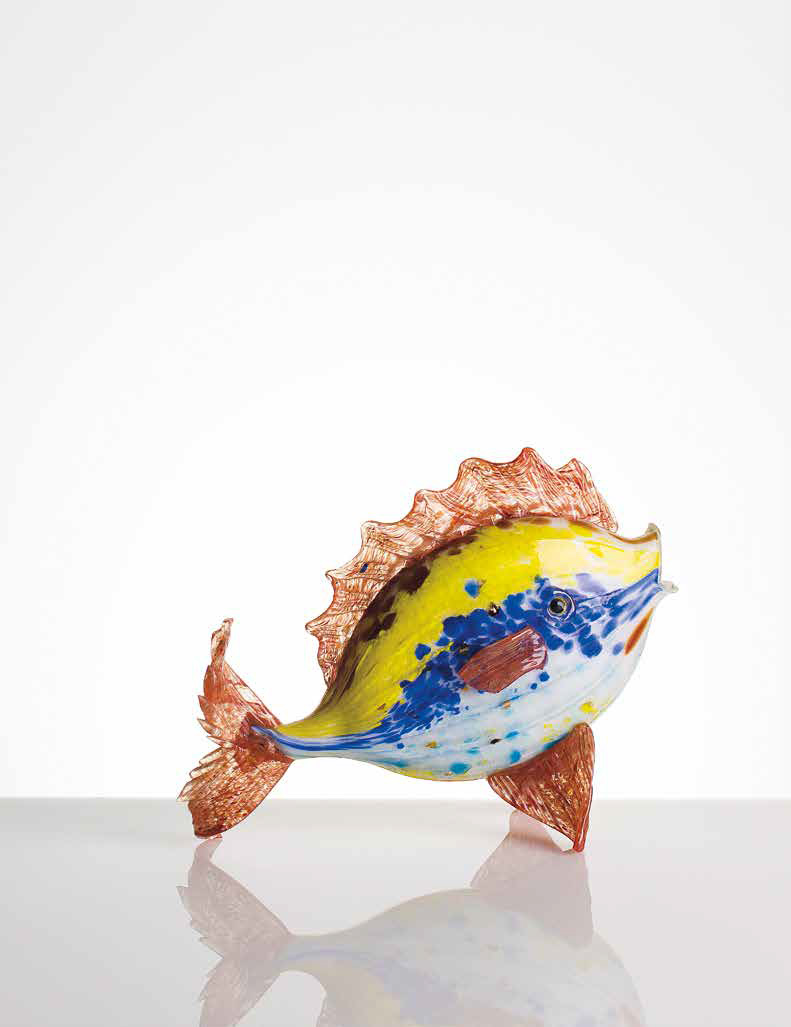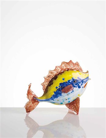 MANIFATTURA MURANESE Pesce in vetro policromo con elementi applicati....