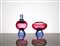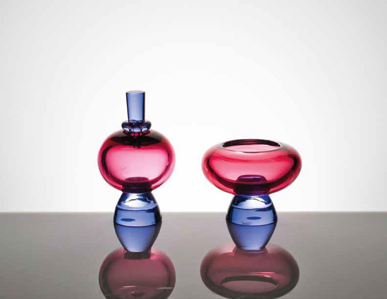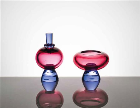 MANIFATTURA MURANESE Coppia di portaprofumi in vetro pesante nei toni del blu e del viola. altezze: cm 13,5, cm 10