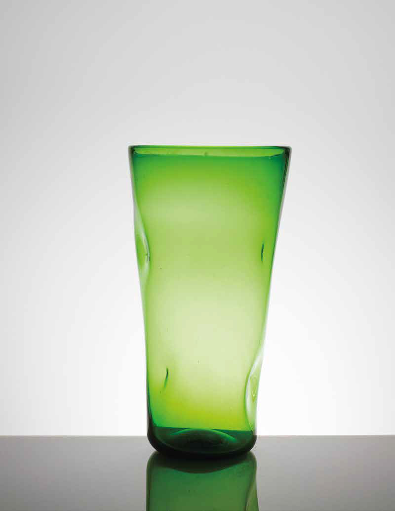 MANIFATTURA MURANESE Vaso in vetro con decoro sfumato a bugne nei toni del verde. altezza: cm 47
