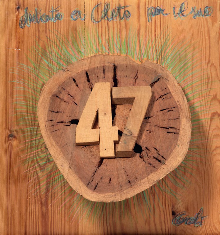 Mario Ceroli Castelfrentano (Ch) 1938 Dedicato a Cleto, (1992) Scultura in legno, cm. 50x46,5x20 Firma in basso a destra: Ceroli. Storia: Collezione Cleto Polcina, Roma; Collezione privata Opera realizzata per il 47° compleanno di Cleto Polcina (1992).