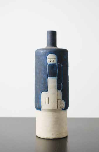 MANIFATTURA ITALIANA Vaso in ceramica nei toni del bianco e del blu, 1970 circa altezza cm 31
