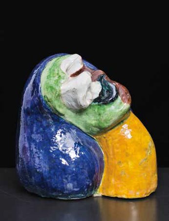 ANTONIUS (CERAMISTA ATTIVO AD ALBISOLA NEGLI ANNI ’50/’60) Testa in ceramica smaltata, 1950 circa. altezza: cm 27