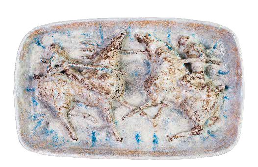 MANIFATTURA ITALIANA Rilievo in ceramica smaltata, 1950 circa. Marca: MADE IN...